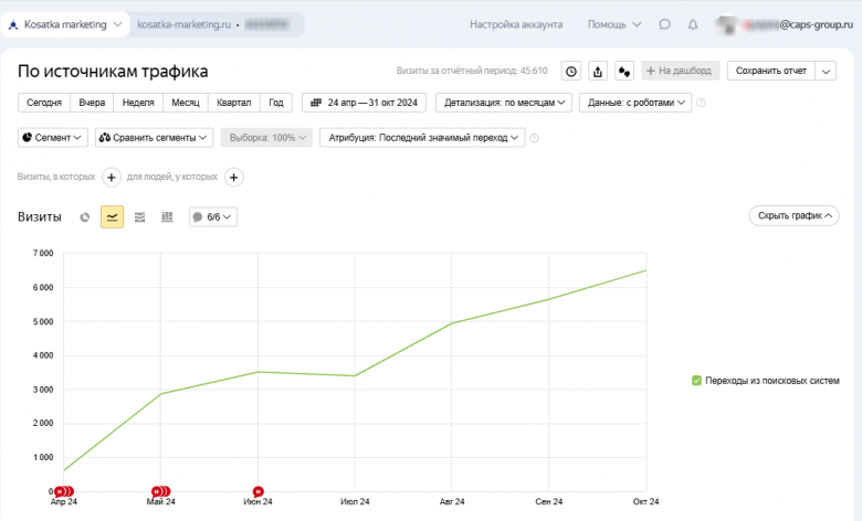 Посещаесть сайта по данным сервиса Яндекс.Метрика